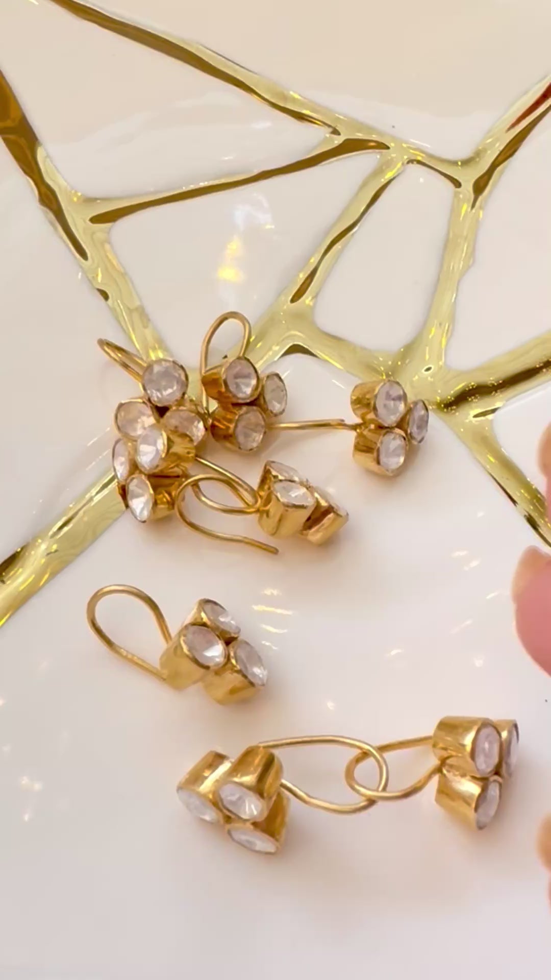Simple, classic and delightful polki hook earrings will be an easy choice for your everyday wear. Made in 925 sterling silver these are good sturdy pieces.