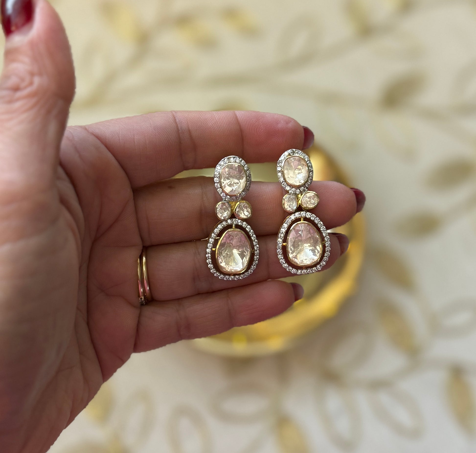 Jewels that quietly become part of you. Sterling silver earrings in high quality polki stone ✨💖, make a statement in our bold Roohi polki earrings and them stand out in your next get together!